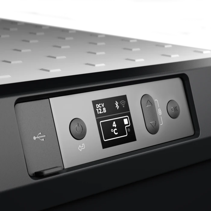The CFX3 series features an easy to read high-resolution colour display panel which states the temperature and status of the cool box. Several protection systems are built into the display, including a scratch-resistant cover and IP64 rated housing to protect against dust and water splashes, so you can feel confident wherever you go. The upgraded USB port is now located in the display panel for a faster and more ergonomic way to charge your portable devices. The intuitive user-interface displays the voltage, Bluetooth/WiFi connection status and temperature in colourful graphics. The operating settings of your cool box can be adjusted at the press of a button with a simple menu.