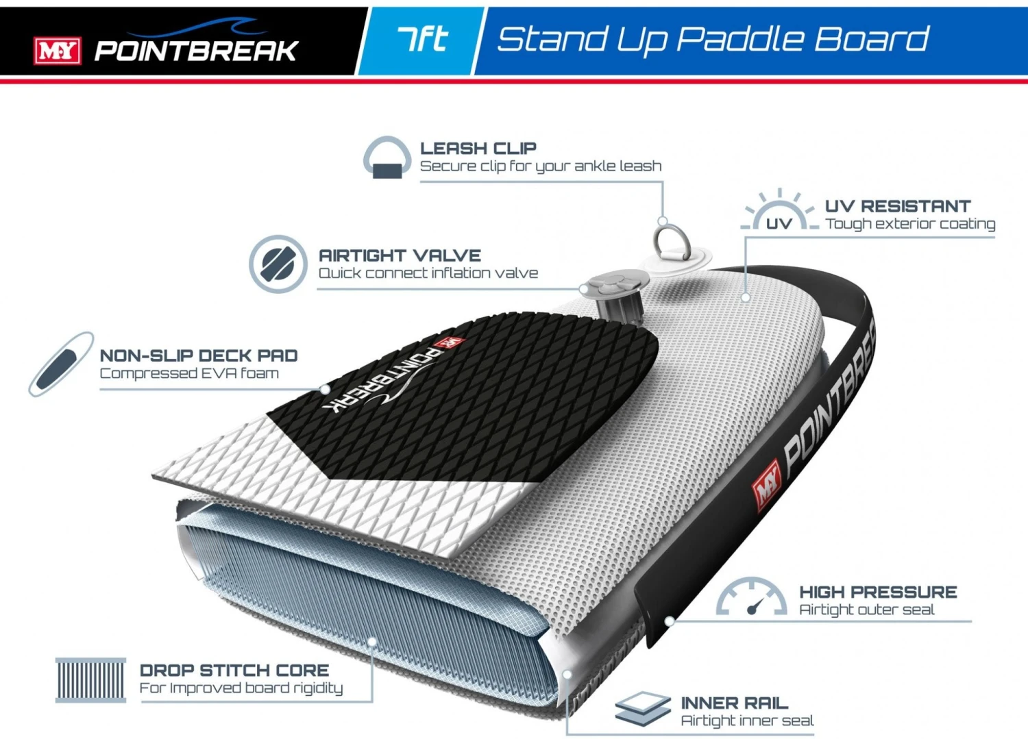 - VALUE & VERSATILITY: If you’re looking for a high quality, versatile and great value paddle board then look no further than the M.Y Point Break Inflatable Paddle Boards. Our 7’ Inflatable Paddle Board is the perfect way to get kids out on the water on their own board and breaking into the popular water sport!