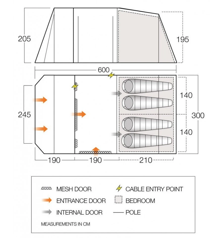 - Vango AirZoneâ„¢ – High and low level ventilation panels combine to create a comfortable flow of air through the tent. Air circulation is essential for reducing condensation