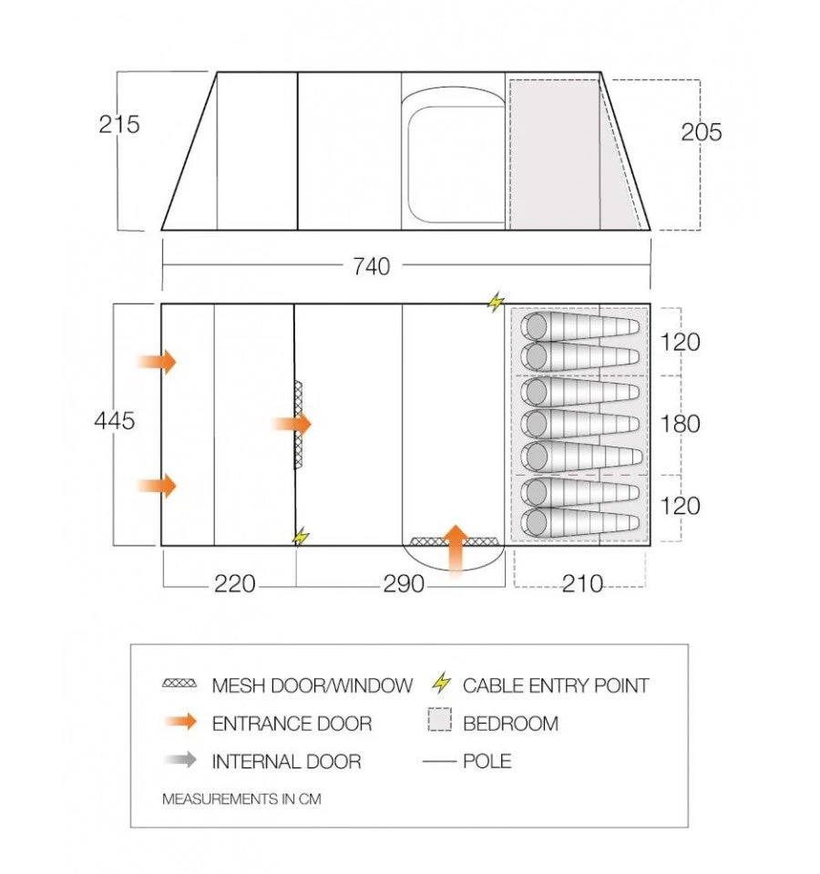 - Double Living Area – An extra large living area giving more space to relax and unwind or store your camping essentials