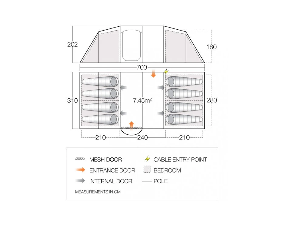 - High Cable Entry – Allows you to neatly run electrical cables out into the awning area at the front of the tent